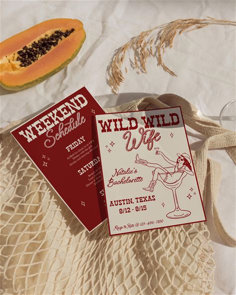 Wild Wild Wife Bachelorette, Invite And Itinerary For Western Bachelorette, Editable Canva Template, Bride's Last Rodeo, Red Cowgirl Theme