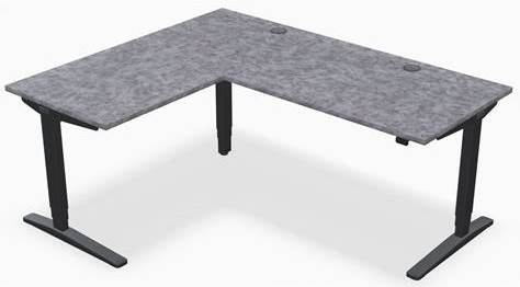 Custom L-Shaped Laminate Desk UPLIFT Desk 66X60 Laminate Gray Pewter Brush