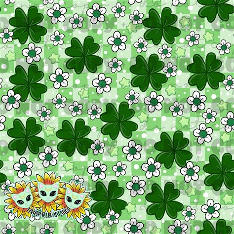 St Patricks Day Checkered Clover Seamless Pattern, Digital Pattern For Fabric Printing, Shamrock Seamless, St Patty Pattern, PNG, Clovers