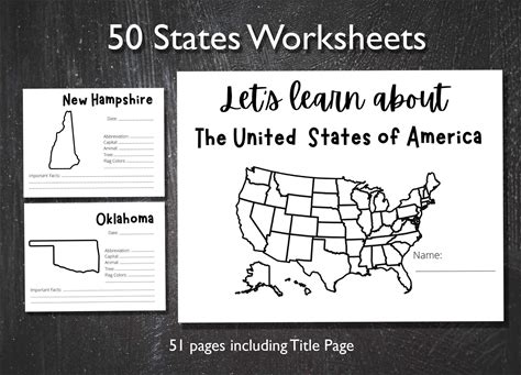 50 States Of The USA Printable Worksheets Bundle