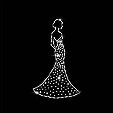 Bride Rhinestone SVG | Elegant Bridal Silhouette With Scatter Skirt | SS10 SS16 Rhinestone Digital Design | Wedding Bling File