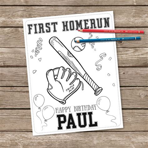 Digital Baseball Coloring Pages, Printable Sport Coloring, Personalized Birthday Baseball Activity