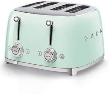 Smeg 50'S Style Retro Aesthetic 4 Slice Toaster 6 Presets Extra Wide Slots Stainless Steel TSF03SSUS
