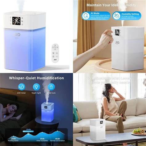 Mist-Free Humidifier - Covers Up To 500 Sq. Ft. - 4 Fan Speeds - LED Nightlight With 7 Color Options