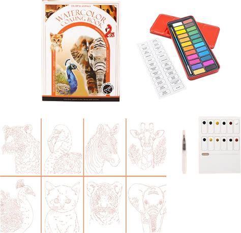 RGBMIX Watercolor Coloring Book For Adults Stress Relief Foldable Painting Pad With 24-Color Paint (Animals)