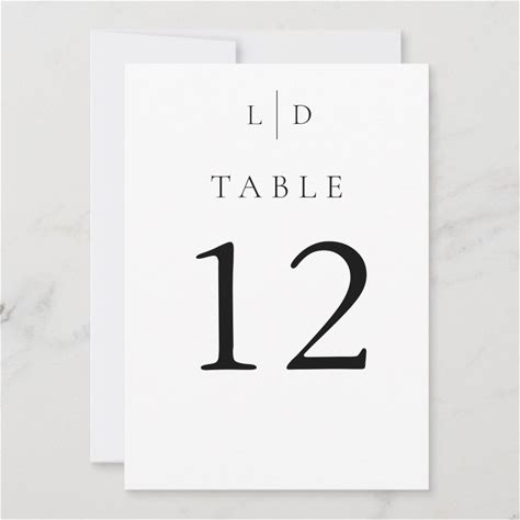 Elegant White And Black Monogram Initials Wedding Table Number