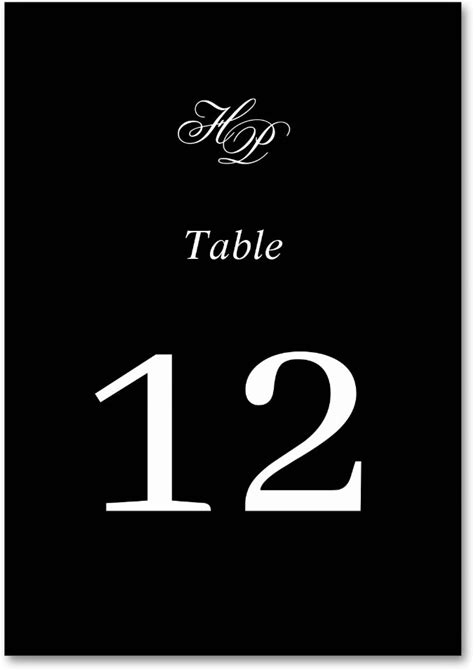 Elegant Black And White Monogram Initials Wedding Table Number