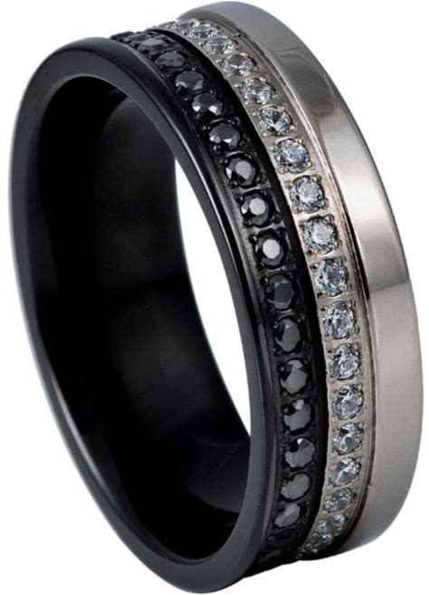 589 Titanium 8mm Two-Tone Plated Double Row Black & White CZ Etenrity 8mm. Ringly. White. Rings.