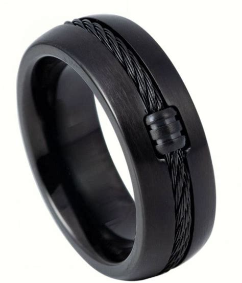 591 Titanium 8mm Black IP Plated With Locked Cable Inlay 8mm. Ringly. Black. Rings.