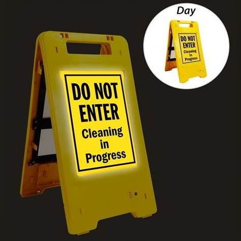 Do Not Enter Cleaning In Progress Plastic LED Folding Sign, 11"X20.5"