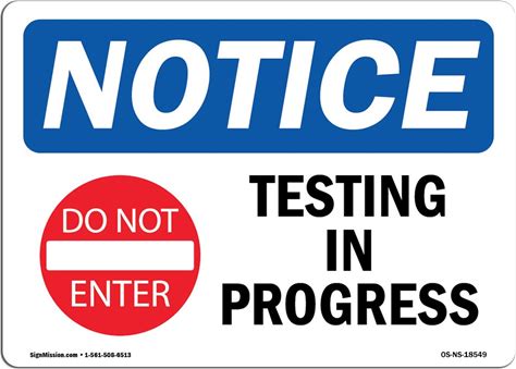 OSHA Notice Signs - Testing In Progress Sign With Symbol | Extremely Durable Made In The USA Signs Or Heavy Duty Vinyl Label Decal | Protect Your