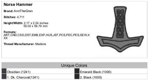 Norse Hammer Embroidery Design. Machine Embroidery Design. Thor's Hammer Embroidery Pattern. Norse Embroidery Pattern
